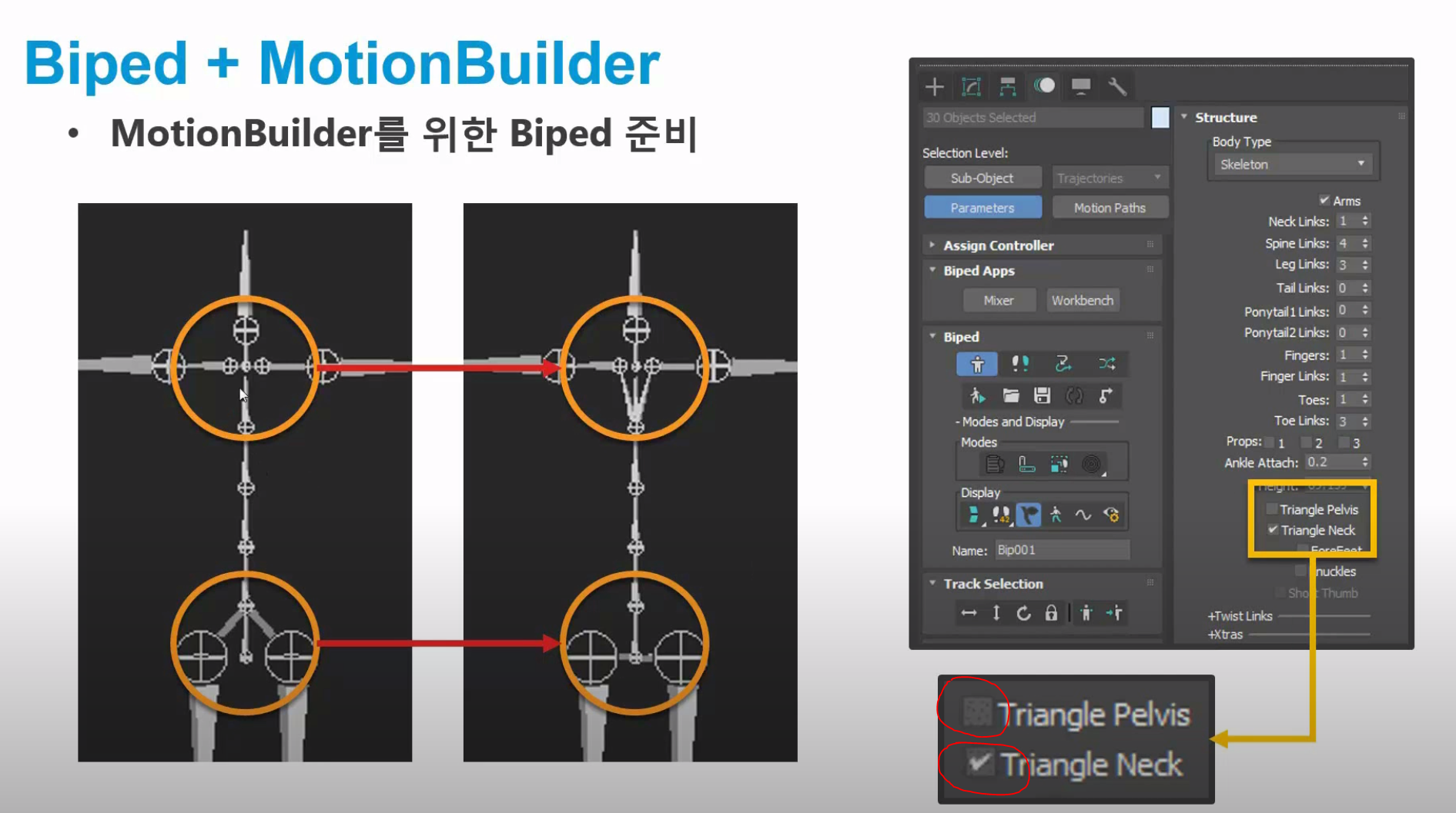triangle pelvis를 끄고 triangle neck을 킨다.